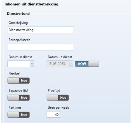 Het venster voor het inkomen van het type Dienstbetrekking heeft twee blokken: